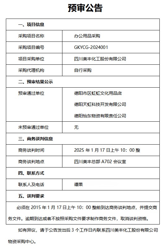 辦公用品采購預(yù)審公告